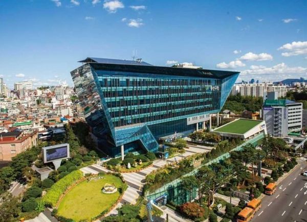 ▲ [용산구청 전경]서울 용산구(구청장 성장현)가 원효대교 북단에 위치한 교통섬 녹지대를 주민 쉼터로 새롭게 만들었다.