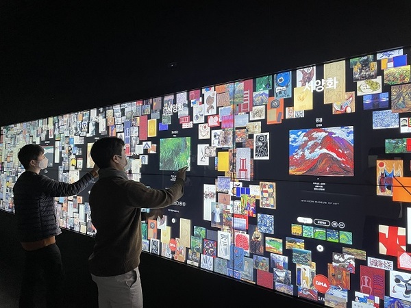▲ [사진제공 = 대전광역시]대전시립미술관(관장 선승혜)은 대전시립미술관 소장품 인터랙티브 플랫폼 구축사업으로 완성한 “손 끝에서 만나는 소장품”의 소장품 미디어월(Medial Wall), 키오스크, 모바일앱을 12월 21일 최종보고회를 거쳐 시민에게 공개한다.