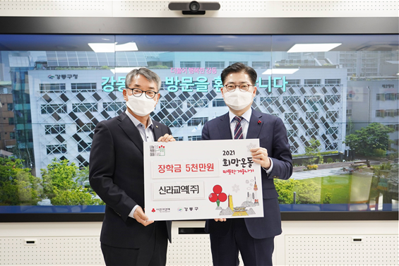 연말연시를 앞두고 코로나19로 더욱 힘든 시간을 보내고 있는 취약계층 학생들을 응원하기 위해 ㈜신라교역과 신라문화장학재단이 장학금 5천만 원을 강동구에 기부했다.