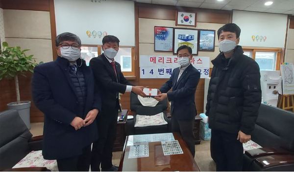▲ [사진제공 = 이천시]장호원JC(장호원청년회의소, 회장 김유성)는『램프의 요정』 930만원분의 문화상품권을 12월 22일 장호원읍행정복지센터 맞춤형복지팀에 전달하였다.
