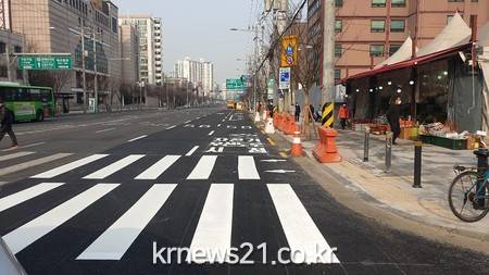 그 결과 기존의 편도 3차선 도로가 4차선으로 확장되고, 보도폭도 넓어져 차량 통행량 완화와 더불어 보행자들의 편의도 향상되는 효과를 보였다.