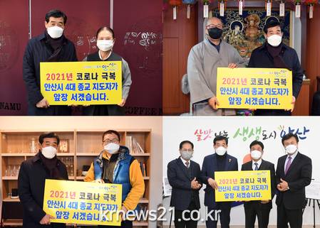 지난 7일 진행된 캠페인은 코로나19 확산 방지를 위한 안산시 4대 종교계의 모범적 방역 실천 다짐과 2021년 신축년을 맞아 시민들에게 희망의 메시지를 전달하기 위해 자발적으로 기획됐다.