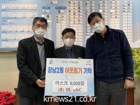 이에 대해 이상오 광남2동장은 “코로나19로 모두가 어려운 상황에도 불구하고 도움을 주신 DL E&C에 감사드린다”며 “기탁해 주신 마스크는 노인일자리, 희망구구단 등 코로나19로 힘든 생활을 하고 계신 일자리 참여자분들에게 전달하겠다”고 화답했다.