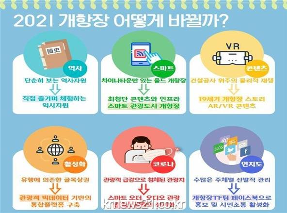 이에 시는 개항의 역사를 살린 콘텐츠 위주의 문화재생모델로 전환하면서 지난해 ‘국내 최초 스마트관광도시(문체부 공모)’ 타이틀을 따내고, 온·오프라인 야행 축제 개최 등 시민 안전을 지키며 개항장의 매력을 알린 새로운 시도로 지난 연말 관광분야 최고 권위의 상인‘한국관광의 별’본상을 수상하는 등 최고의 역사·문화 관광지로 급부상하고 있다.