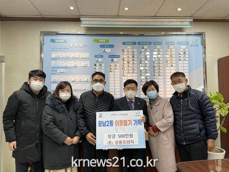 ▲ [사진제공 = 광주시]광주시 광남2동에 위치한 상용프라자 김상용 대표는 지난 21일 광남2동 행정복지센터를 방문, 어려운 이웃을 돕는데 사용해 달라며 성금 500만원을 전달했다.
