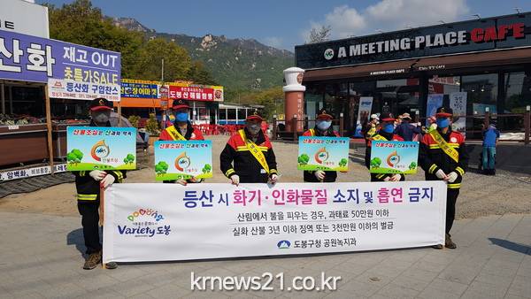 이동진 도봉구청장은 “산불예방은 입산객과 주민 모두의 적극적인 참여와 관심이 필요하다.”며 “산림과 연접한 주말농장, 밭두렁과 같은 곳에서 불을 피우는 행동을 금지하고, 가연성 물질을 소지하고 입산하지 않도록 꼭 협조해 주시길 바란다.”고 당부했다.