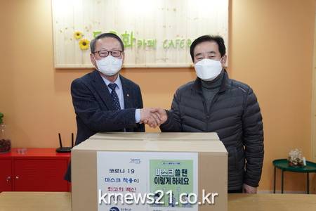 이 날 송기섭 진천군수도 배부 현장을 찾아 맞춤형돌봄사업 종사자들을 위한 마스크를 함께 전달했다.