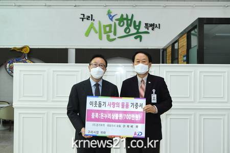 안승남 구리시장은 “매년 명절 때마다 관내 어려운 이웃들을 위해 나눔 문화에 실천하고 있는 ㈜경기여객 임직원 일동에 깊이 감사드리며, 후원품은 다가오는 명절 소외된 이웃에게 소중히 전달되어 명절의 훈훈한 정을 느낄 수 있는 하루가 될 수 있도록 하겠다”고 전했다.