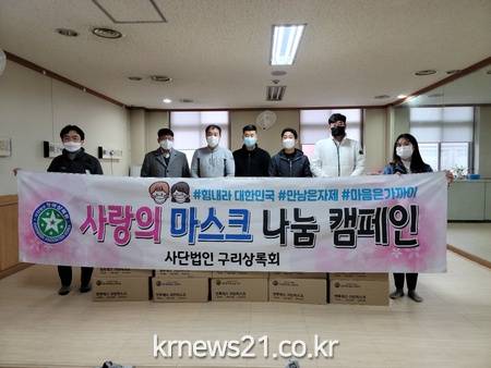 ▲ [사진제공 = 구리시]구리시(시장 안승남)는 지난 5일 관내 봉사단체인 구리상록회(회장 김현준)에서 코로나19 상황을 함께 극복해 나가자는 취지로 구리시정신건강복지센터에 마스크 5만장을 전달했다고 밝혔다.