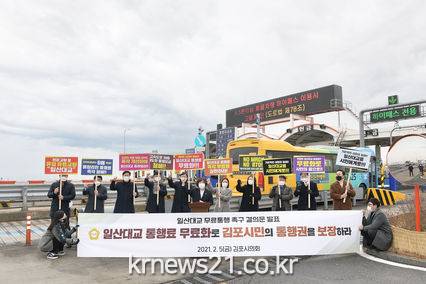 김포시의회는 5일 제207회 임시회 제2차 본회의에서 『일산대교 무료통행 촉구 결의안』을 채택했다. 시의회는 지난 2008년 일산대교 개통이후 통행료 인하 및 무료화를 위해 지속적으로 목소리를 내왔는데, 이번 결의안은 채택은 지난 2008‧2010년에 이어 세 번째다.