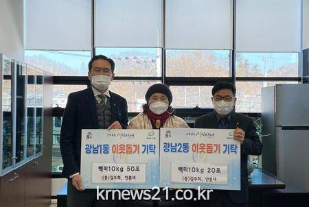 한편, 전달받은 백미 70포는 광남1동 50포, 광남2동 20포로 나눠 관내 어려운 이웃에게 전달할 예정이다.