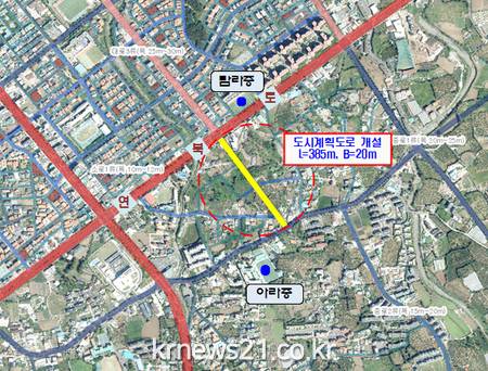 ▲ [이미지제공 = 제주시]제주시에서는 연북로와 아라동 지역 간의 원활한 소통을 위하여 간드락마을(중로1-1-53) 도로개설사업을 본격 착수한다고 밝혔다.