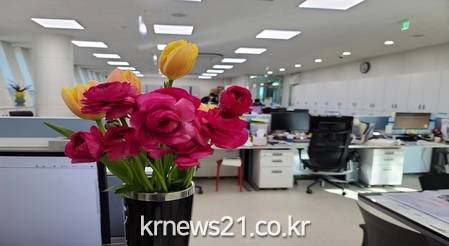 ▲ [사진제공 = 진천군]진천군이 지역 화훼 소비 촉진을 위한 ‘사무실 꽃꽂이 행사’에 나섰다.