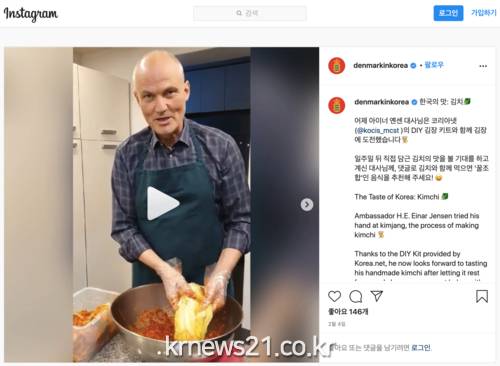 지난 2월 4일 김치 담그는 사진과 영상을 공개한 아이너 옌센(Einar Hebogård Jensen) 주한 덴마크 대사는 “김치소는 매우니 눈에 들어가지 않게 조심해야 한다.”라면서도 “김치 맛을 좋아해 일주일 뒤가 벌써부터 기다려진다.”라고 기대감을 숨기지 않았다. 옌센 대사는 누리꾼들에게 김치와 잘 어울리는 ‘꿀조합’ 음식을 추천해 달라고 썼다. 주한 덴마크 대사관의 페이스북, 트위터, 인스타그램, 블로그에는 한국, 덴마크, 캐나다 등 다양한 국적의 누리꾼들이 보쌈, 플레스케스텍(Fløskesteg, 덴마크 전통 돼지고기 요리), 고구마, 두부 등을 김치와 어울리는 음식으로 추천했다.