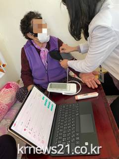 ▲ [사진제공 = 서귀포시]서귀포보건소(소장 강미애)에서는 올 2월 15일부터 방문건강관리사업에 제주도에서 최초로 5G 이동형 방문케어키트를 활용한 방문건강관리서비스를 제공하고 있다고 밝혔다.