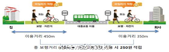 광역알뜰교통카드의 마일리지는 모바일 앱 설치 후 사용할 수 있다. 대중교통 이용 전·후에 걷거나 자전거로 이동하면 최대 800m당 약 250원에서 450원의 마일리지가 적립(800m 미만은 이동거리에 비례해 적립)되며, 적립된 마일리지로 다음달 청구되는 대중교통 비용을 최대 20%까지 할인받을 수 있다.