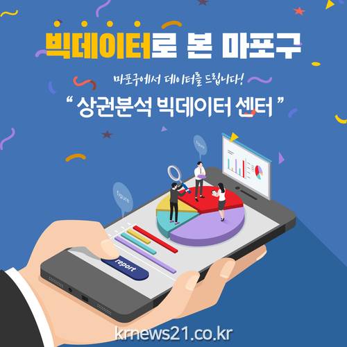 ▲ [사진=홍보포스터]마포구(구청장 유동균)는 빅데이터를 활용해 상권찾기 서비스를 제공하는 마포구의 상권분석 빅데이터 서비스 플랫폼 ‘마포구 상권분석 빅데이터 센터’를 3월부터 운영하고 있다고 밝혔다.