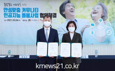 안성시(시장 김보라)는 4일 삼죽면 주민자치센터에서 돌봄이 필요한 어르신들을 위한 인공지능 돌봄 사업 업무협약을 체결했다고 밝혔다.