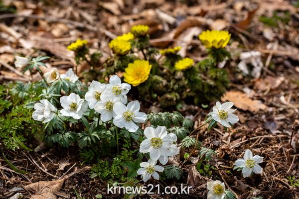 이밖에 가장 먼저 봄을 알린다는 복수초, 보송보송 아기 같은 솜털을 자랑하는 노루귀, 꽃받침이 꿩의 목덜미를 닮은 꿩의바람꽃 등 다양한 봄의 전령이 눈길을 사로잡는다.