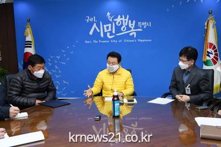 ▲ [사진제공 = 구리시]구리시(시장 안승남)는 8일 시청 회의실(3층)에서 구리시청 공무직 노동조합(위원장 황용규)과 2021년 임금교섭 협의를 위한 상견례를 개최했다.