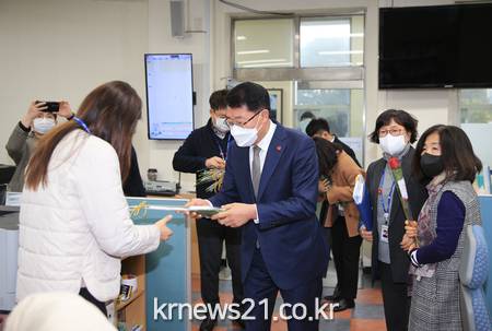제주시에서는 3월 8일 ‘세계 여성의 날’을 맞이하여 제주시 여성 공직자 1,387명을 대상으로 ‘사랑의 꽃 전달 캠페인’을 실시했다고 밝혔다.