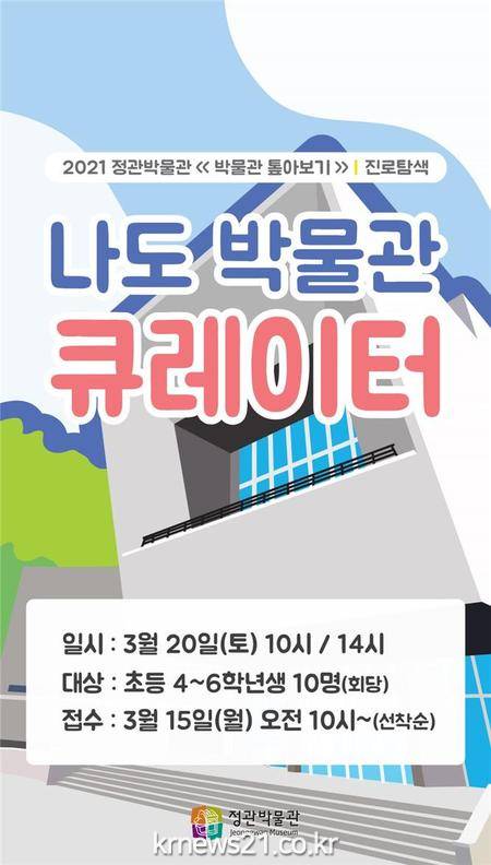 ▲ [사진=홍보포스터]부산시(시장 권한대행 이병진) 정관박물관은 새학기를 맞이해 어린이들에게 다양한 직업체험의 기회를 제공하고자, 3월 20일 오전 10시, 오후 2시에 ‘박물관 톺아보기–나도 박물관 큐레이터’를 운영한다고 밝혔다.