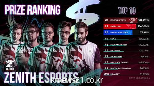 3월 13일과 14일 펼쳐진 4주 차 위클리 파이널 결과, 북아메리카의 Zenith가 합산 54킬 86포인트로 승리해 상금 15만달러를 획득했다. 여기에 크라우드 펀딩 상금을 포함한 Zenith의 누적 상금은 약 35만달러로, 현재까지 가장 많다.