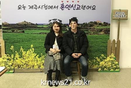 ▲ [사진제공 = 제주시]제주시 종합민원실에서 운영하고 있는 혼인신고 기념 포토존이 인생 새 출발의 의미 있는 장소로 신혼부부들에게 각광받고 있다.