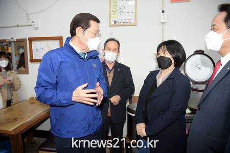 이용섭 광주광역시장은 17일 ‘해뜨는 식당’을 찾아 경영상황을 점검하고 식당의 지속 가능 방안을 모색했다.