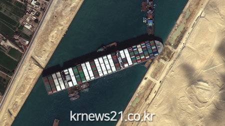 ▲ [SHUUD.mn=뉴스21 통신. 무단 전재-재배포 금지.]전세계 물류 대동맥인 이집트 수에즈 운하가 컨테이너선 '에버 기븐'(Ever Given)로 인해 엿새째 가로막혀 있는 가운데, 수에즈 운하를 이용하기 위해 몰렸던 전 세계 선박들이 운항을 멈추며 피해가 눈덩이처럼 불어나고 있다.