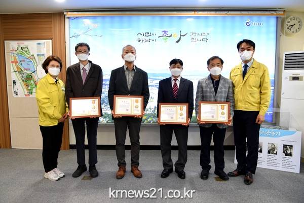 김상호 하남시장은 지난 30일 시장실에서 호흡기감염클리닉과 선별진료소 운영 등 코로나19 대응에 헌신한 민간 의료진 10명에게 표창을 전달하고 감사의 뜻을 전했다. 시상식은 코로나19 확산 방지를 위해 수상자 일부만 참석했다.