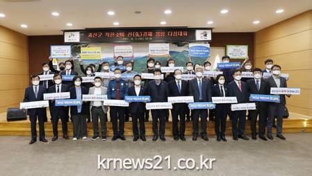 ▲ [사진제공 = 괴산군]충북 괴산군은 1일 군청 대회의실에서 코로나19로 어려움을 겪고 있는 소상공인을 지원하기 위한 ‘괴산군 착한소비 선(先)결제’ 동참 다짐대회를 개최했다.