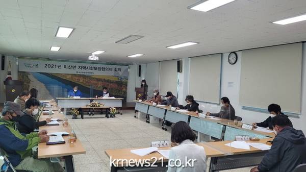 연천군 미산면 지역사회보장협의체(공동위원장 이용희, 박노식)는 지난 3월 30일, 미산면 주민자치센터 1층 회의실에서 협의체 위원 14명 및 연천군 협의체 사무국장과 간사가 참석한 가운데 2021년 제1차 미산면 지역사회보장협의체 회의를 개최했다.