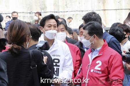 한편 오 후보는 민주당 이낙연 전 대표 등이 잇따라 부동산 정책에 대해 반성의 뜻을 밝힌 데 대해서는 "임대차 3법, 과도한 세금, 공시지가 급속 상승 등에 대한 분명한 대안을 제시하지 않으면서 잘못했다고만 말하는 것은 표를 얻고자 하는 것일 뿐"이라고 비판했다.