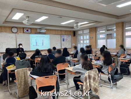 ▲ [사진제공 = 서귀포시]서귀포보건소(소장 강미애) 정신건강복지센터에서는 지난 3월 31일 효돈중학교 재학생(153명)을 대상으로 청소년과 함께하는 자살예방 생명사랑 지킴이 게이트키퍼 양성교육을 실시했다고 밝혔다.