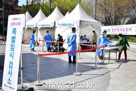 ▲ [사진제공 = 중랑구]중랑구(구청장 류경기)가 오늘 5일부터 4월 9일 금요일까지 5일간 망우역 광장에서 코로나19 특별임시검사소를 운영한다.