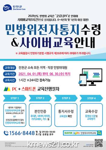 ▲ [사진=홍보포스터]진천군은 코로나19 감염 예방을 위해 지난해에 이어 올해도 민방위 교육을 사이버교육으로 실시한다고 5일 밝혔다.