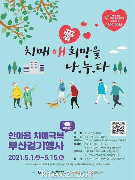 이에 시는 올해는 비대면으로 걷기행사를 추진한다. 올해 처음 시도하는 비대면 걷기 행사는 부산시가 주최하고 부산광역치매센터 및 16개 구·군 치매안심센터가 공동 주관한다.