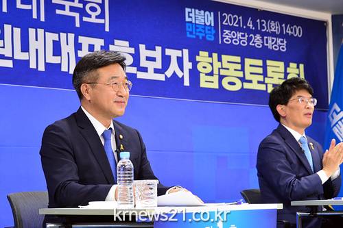 윤 신임 원내대표는 정견발표에서 "속도조절은 핑계"라며 "검찰개혁, 언론 개혁, 많은 국민들께서 염원하는 개혁 입법을 흔들리지 않고 중단없이 추진하겠다"고 했다.