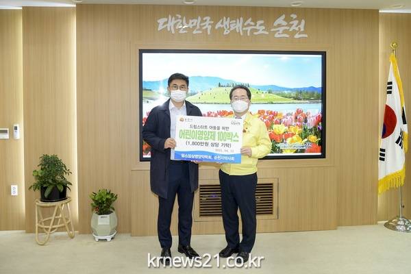 허석 순천시장은 “코로나19 장기화로 아이들의 영영불균형이 우려되는 상황에서 아이들의 건강을 위해 나눔을 실천해 주신 순천시 약사회와 팜스임상영양약학회에 감사드린다.”며 “따뜻한 마음을 우리 아이들에게 잘 전달하겠다.”고 말했다.
