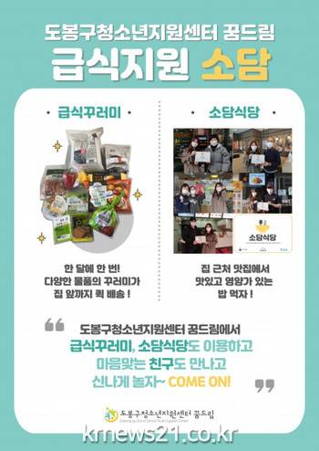 도봉구학교밖청소년지원센터 꿈드림은 급식지원을 통해 학교 밖 청소년의 건강한 성장과 발달을 도모하고, 영양 개선 및 결식 예방을 지원한다.
