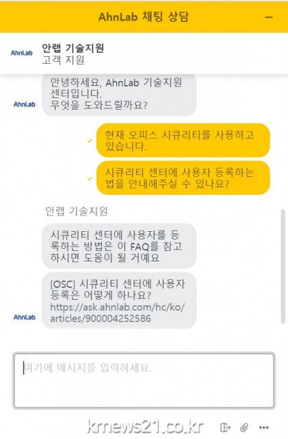 안랩 고객지원팀 최문자 팀장은 “실시간 채팅 상담 기능 도입으로 고객에게 필요한 정보를 더욱 신속하게 제공해 고객 경험을 향상할 수 있을 것”이라며 “앞으로도 안랩은 고객의 편의성과 만족도를 높이기 위해 고객 중심의 지원 서비스를 제공하겠다”고 말했다.