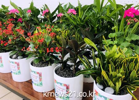 스파티필름, 꽃기린, 아레카야자, 제라늄, 고무나무, 크로톤 등의 반려식물 50개는 마봄협의체 후원금으로 마련했다.