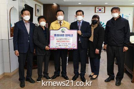 홍동면은 지난 21일 군청 군수실에서 (재)홍성사랑장학회 김석환 이사장과 홍동면장 등 홍동면기관단체장이 참석한 가운데 홍성사랑장학회 기탁식을 가졌다고 밝혔다.
