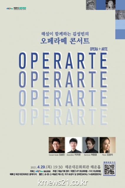 콘서트 가이드 김성민과 해운대문화회관은 ‘음악과 함께하는 여행과 작품’ 시리즈를 통해 음악과 작품에 대한 유래, 문화 등 해설을 제공했으며, 관객에게 음악과 시각 자료를 함께 전달한다는 평과 함께 많은 사랑을 받은 바 있다. 2021년에는 ‘오페라떼’로 이탈리아 르네상스 3대 거장과 음악이 함께하는 테마로 진행된다. 29일 공연에는 예술가 미켈란젤로의 작품과 주세페 베르디, 루제로 레온카발로 등의 작곡가의 곡과 함께 유익하고 다가가기 쉬운 클래식을 관객들에게 선사할 예정이다.