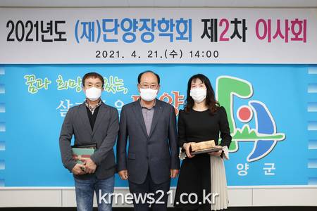 (재)단양장학회 이사회는 군청 소회의실에서 제2차 이사회를 개최하고 100여명의 장학생 선발을 심의·의결했으며, 이와 함께 미담(美談) 넘치는 단양군 공직자 2명에게 감사패와 함께 소정의 기념품을 수여했다고 지난 23일 밝혔다.