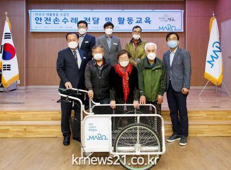 한편 구는 「서울특별시 마포구 재활용품 수집인 지원에 관한 조례」를 제정한 지난 2016년 이래 매년 교통안전 교육과 함께 안전용품을 지원하고 있으며, 마스크를 구하기 어려웠던 지난해 2월과 7월 두 차례에 걸쳐 보건용 마스크를 지원한 바 있다.