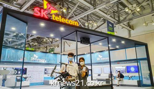 ▲ [사진제공 = SK텔레콤]SK텔레콤(대표이사 박정호)이 29일부터 5월 1일까지 부산 벡스코에서 열리는 국내 최대 드론 전시회 ‘2021 드론 쇼 코리아’에서 5G 기반 드론 관제 솔루션을 선보인다.