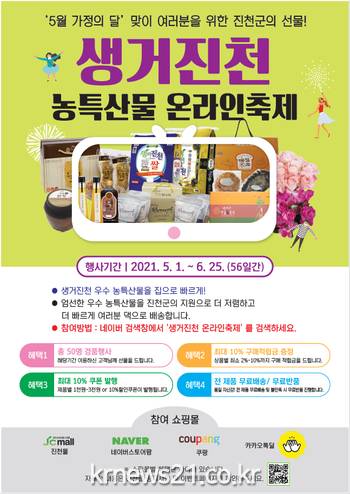 한편 군은 지난해 코로나19로 농산물 판매에 어려움을 겪고 있는 지역 농가를 위해 약 2개월간 농특산물 온라인 축제를 개최했으며 축제를 통해 약 1억 3천만 원의 매출을 기록한 바 있다.