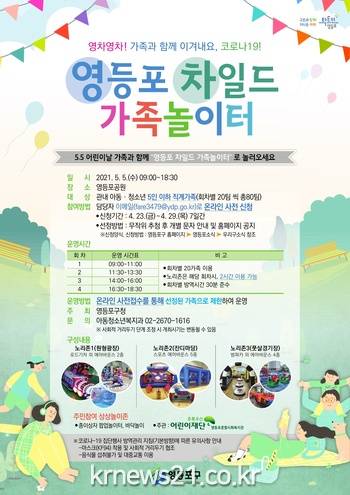 ▲ [사진=홍보포스터]영등포구(구청장 채현일)가 어린이날을 맞아 지역 어린이와 청소년들이 가족과 함께 특별한 추억을 만들 수 있도록 ‘영등포 차일드 가족놀이터’ 행사를 마련했다.